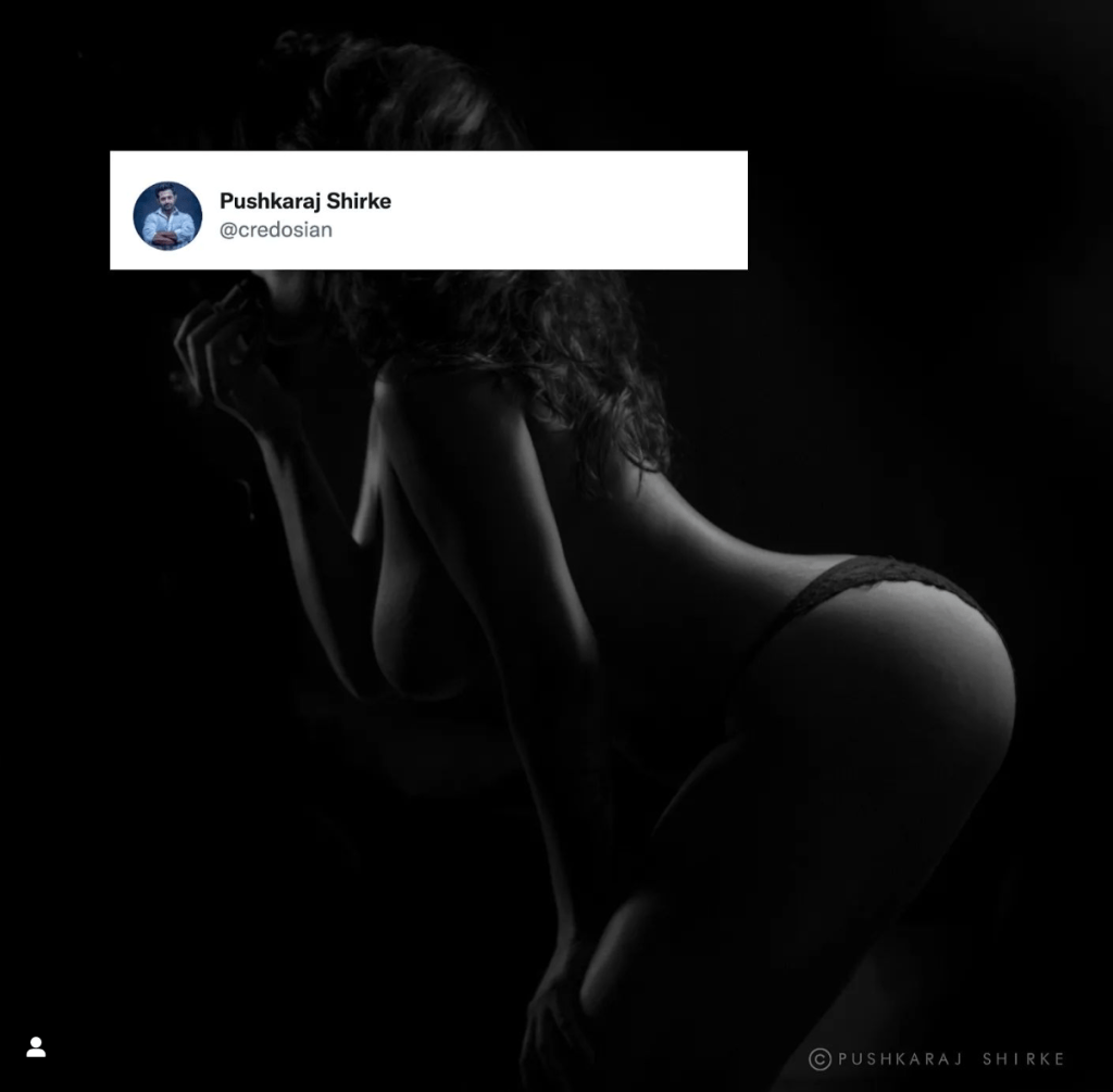Most of this gallery, apart from the commercial work, is what started as a project titled ‘IN THE SKIN’ (under the pseudonym AIZEN CRAFT). It is an attempt to capture what unphotoshopped and real bodies looked like. The simplistic fineart, monochrome style is unique to Pushkaraj Shirke and he uses it often to take away the bias of color and sexuality and drive the focus onto the real art that is the beauty of the human form expressed through the images.